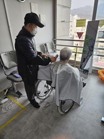 정성껏 한 분 한 분 컷트를 해주시는 모습을 사진으로 담아