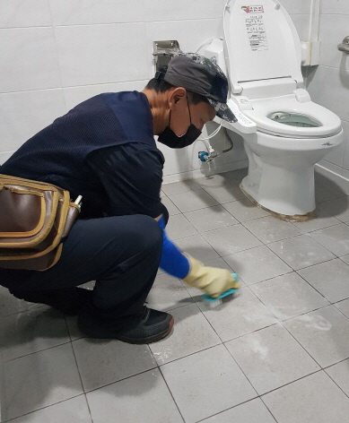 손이 닿기 힘든 부분까지 꼼꼼하게 청소하고 있습니다.