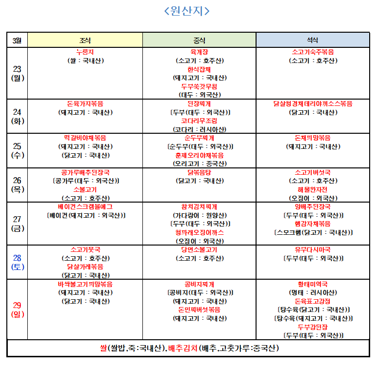 3월 3주 식단입니다