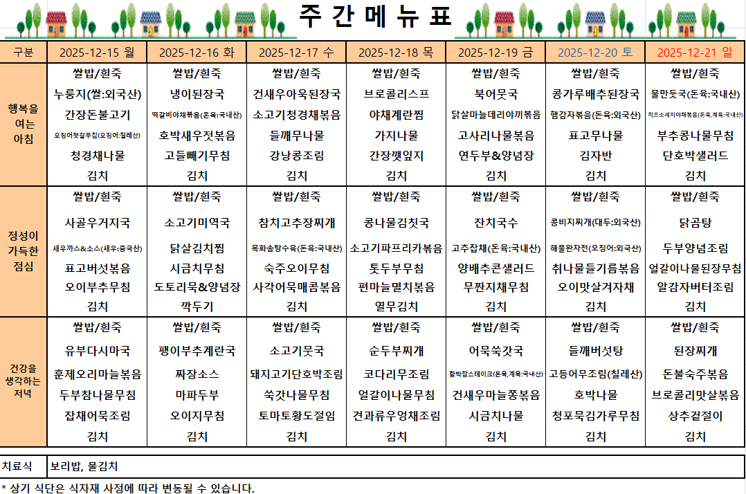 12월 3주 식단입니다