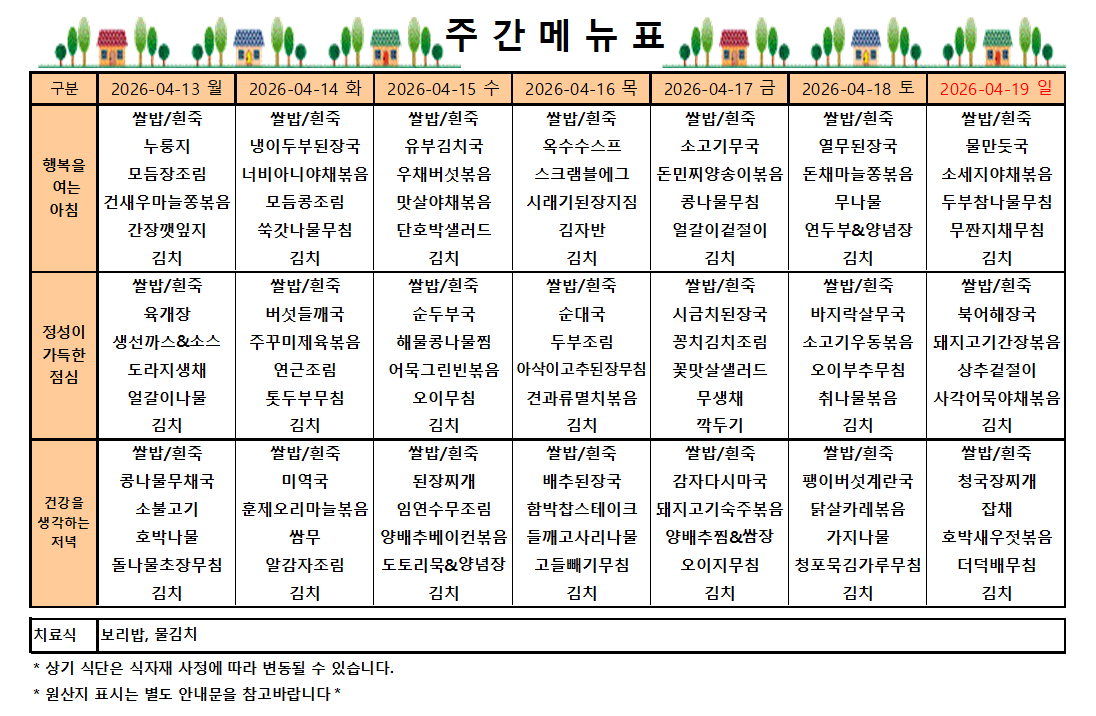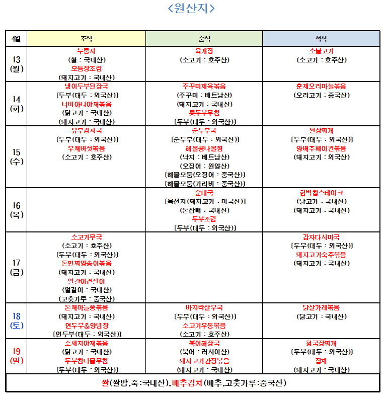 4월3주 식단입니다